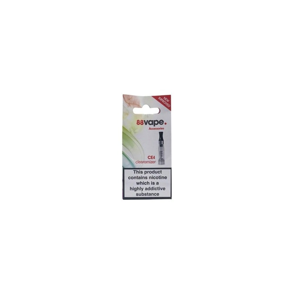 Easy to refill and leak-free, the 88Vape CE4 Replacement Clearomizer is simply perfect for new vapers. Compatible with the 88Vape Advanced Classic starter kit, it’s an essential replacement or spare to keep on hand and will deliver up to five weeks of flavoursome mouth to lung vaping. You can enjoy your e liquids to the max, whether you favour fruity juice, menthol hits or indulgent dessert flavours. The CE4 boasts a capacity of 1.6ml and is suitable for vaping e liquids which are at least 50PG.